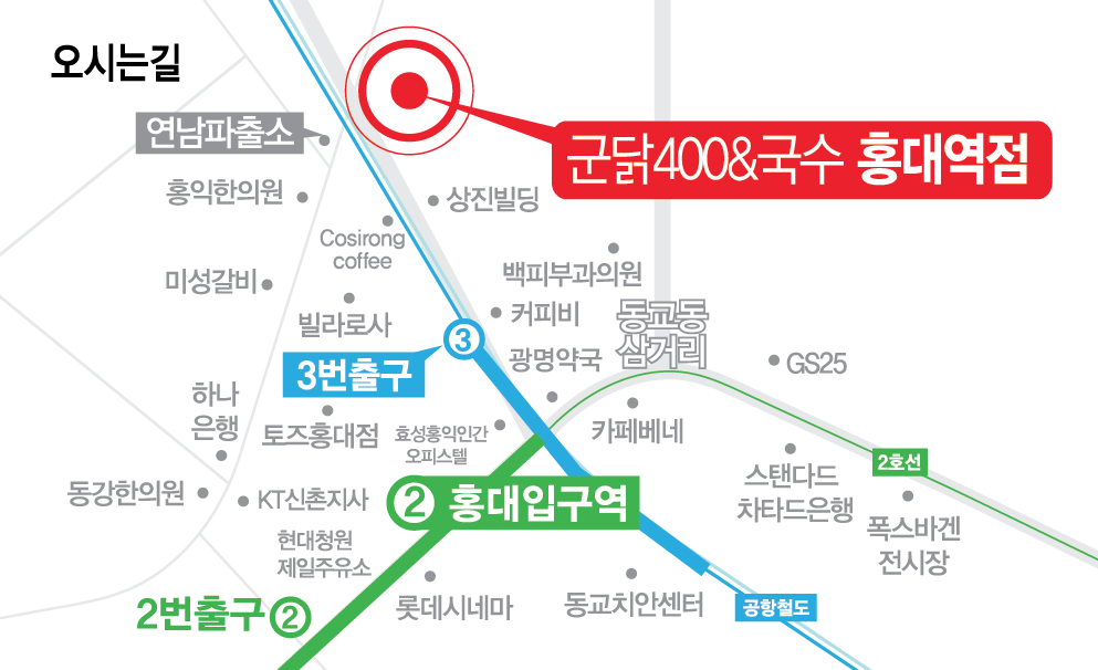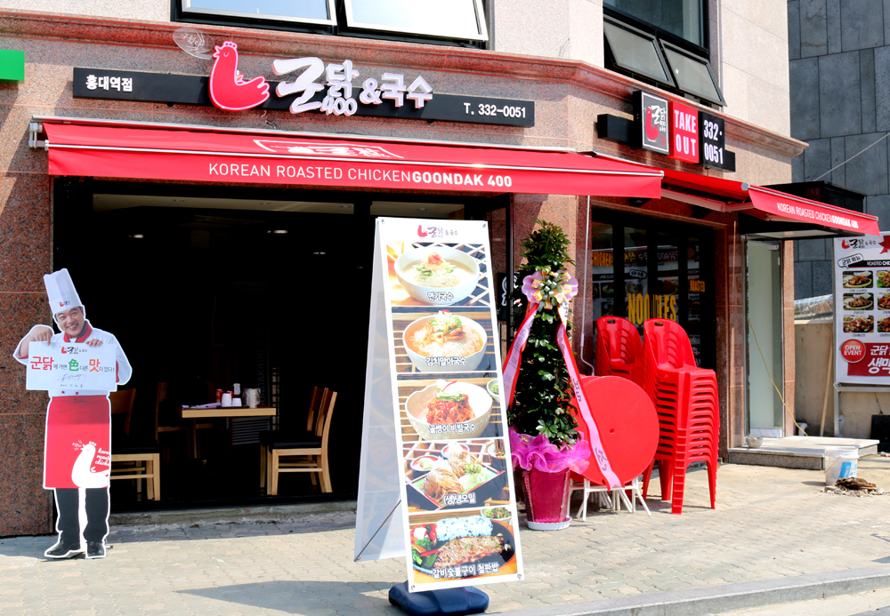 저희 군닭400&국수 4월22일 홍대역점이 오픈을 하였습니다. 홍대역점 주소 : 서울시 마포구 동교동 150-3번지 문의전화 : 02.332.0051